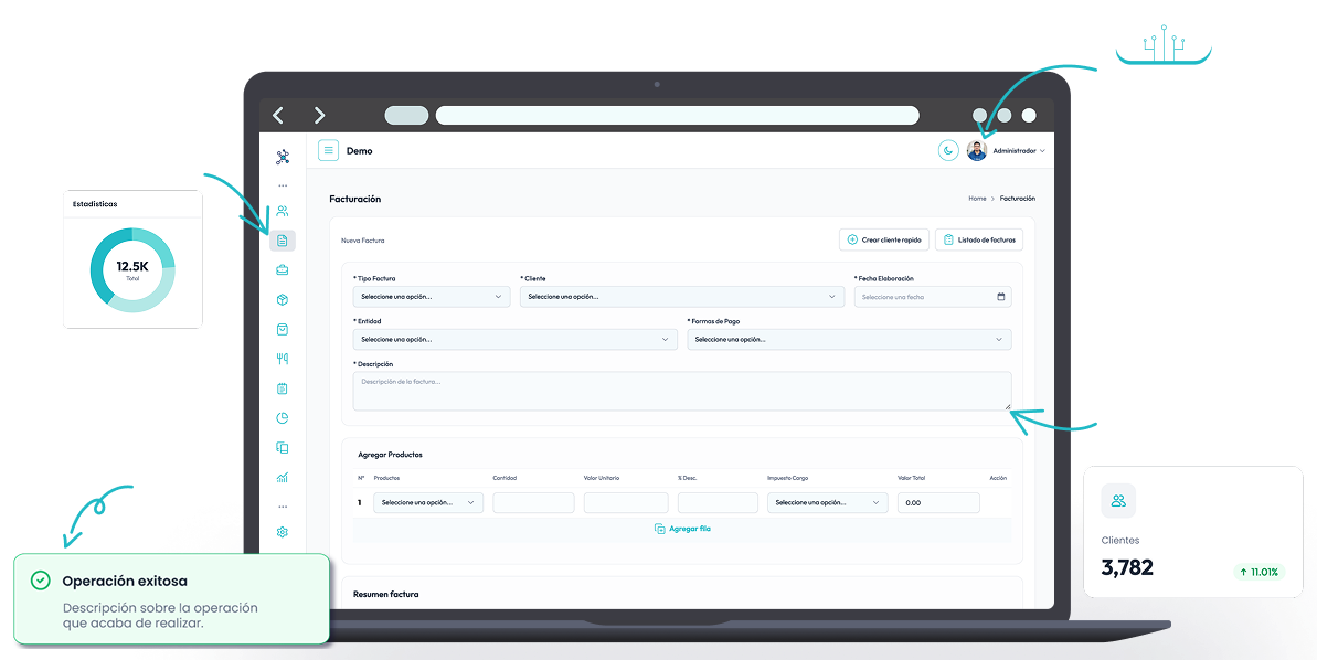 Interfaz intuitiva y adaptable a las necesidades de cada cliente.